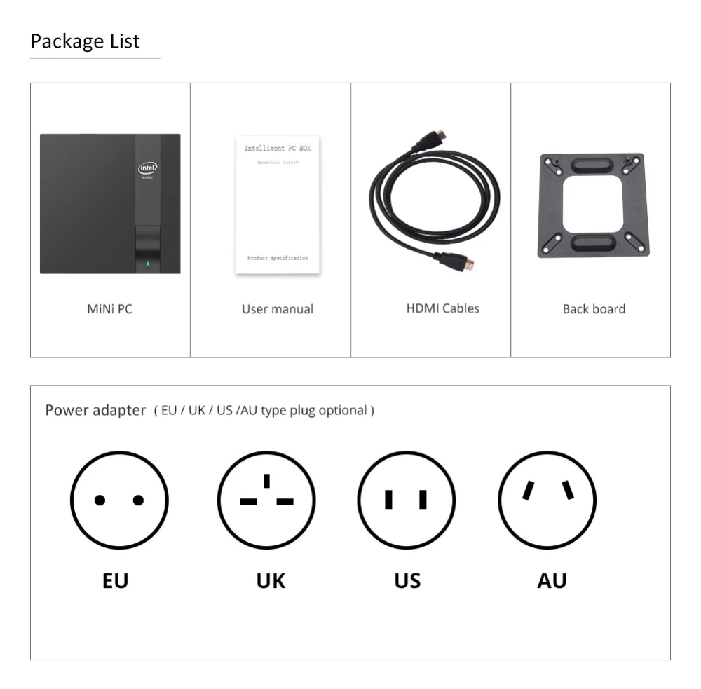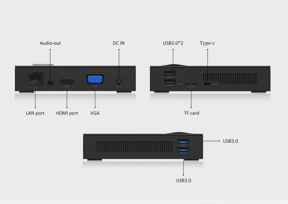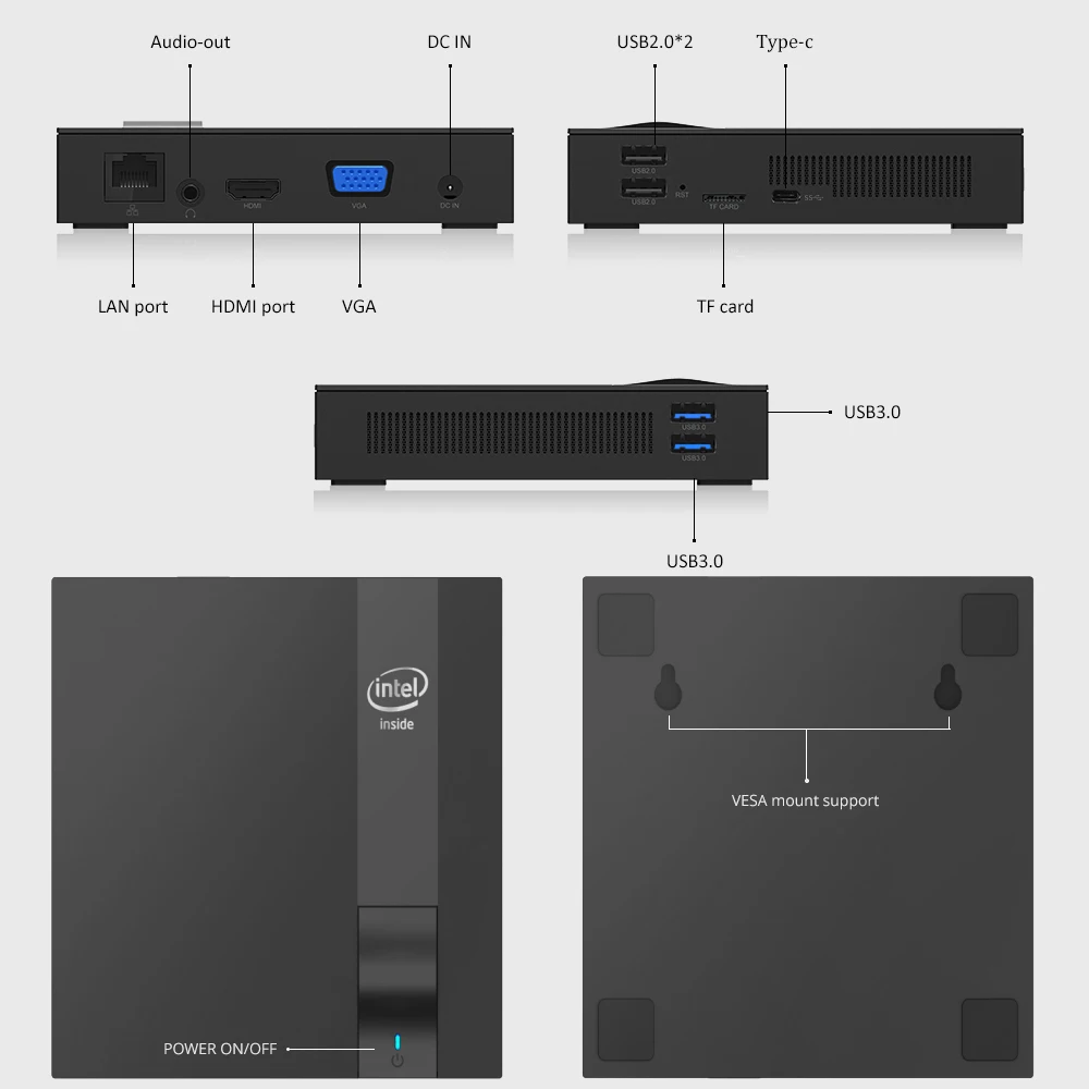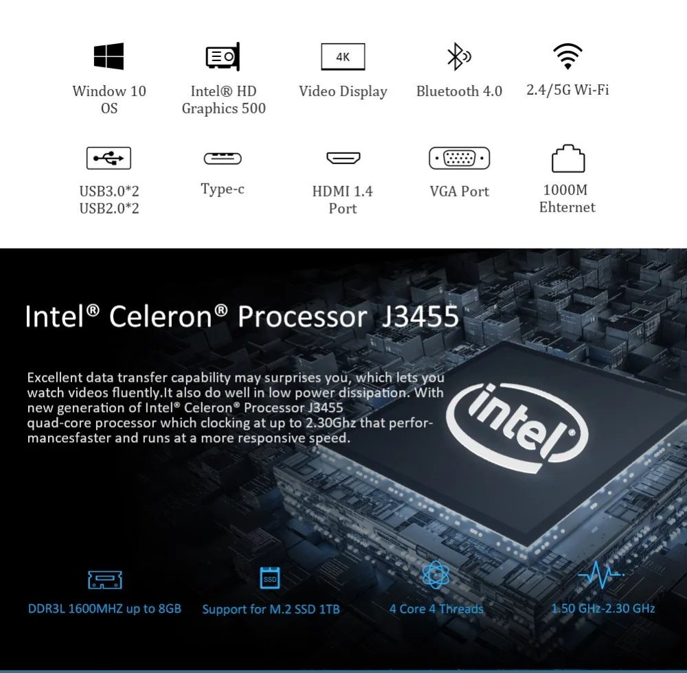 | Quad-cores Mini PC Intel Celeron J3455 Windows 10 4K HTPC DDR3L M.2 SSD HDMI VGA 2.4/5.0G WiFi Bluetooth4.0 4*USB Type-C TV Box |