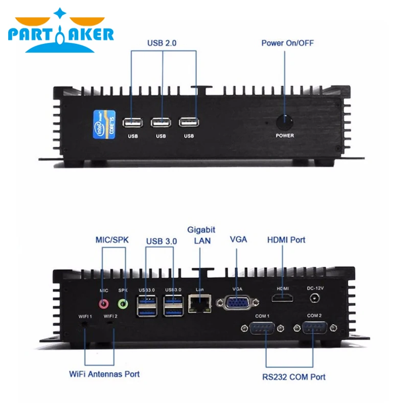 | Partaker I3 Intel Core i3 5005U Industrial Mini PC Windows 10 i3 Mini PC ITX Aluminum Rugged Fanless Micro Computer 2 RS232 COM |