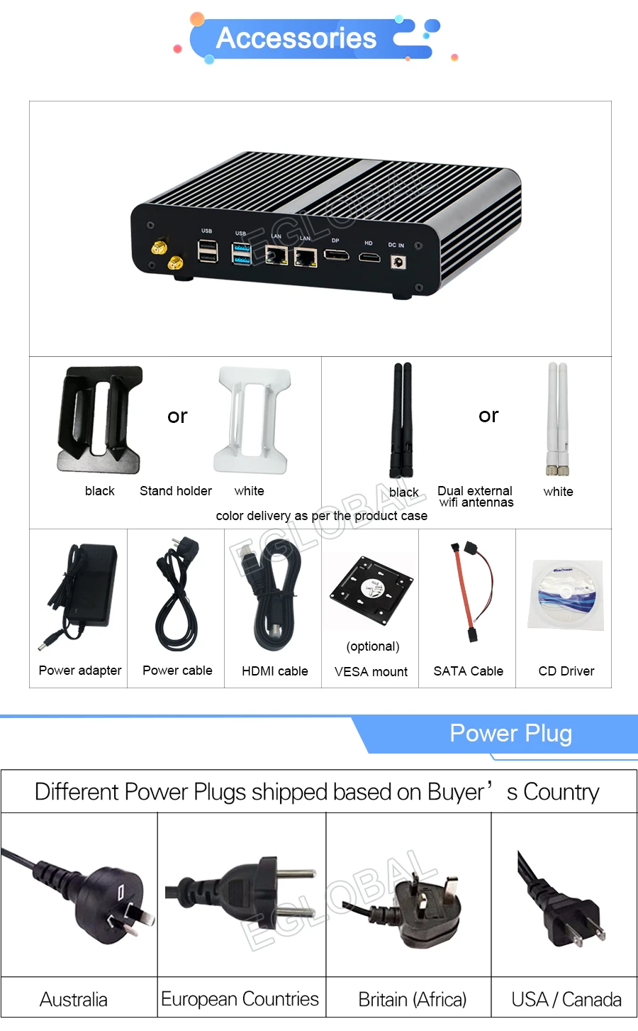 EGLOBAL Fanless 12v Intel Pentium 4405U 4415U mini pc DDR4 RAM intel processor