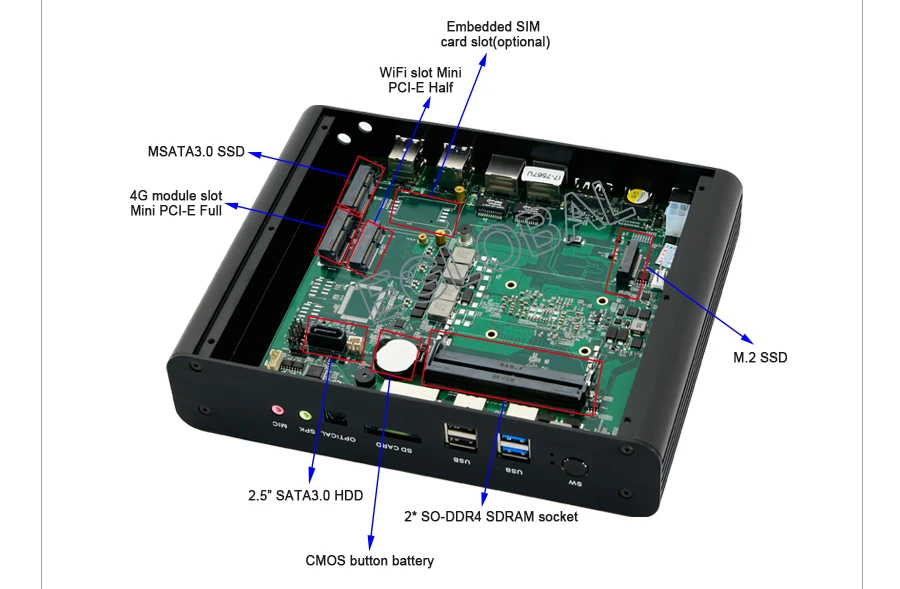 1*Mini PC1*Set of SATA power and data cables(for 2.5'' hard drive installation)
