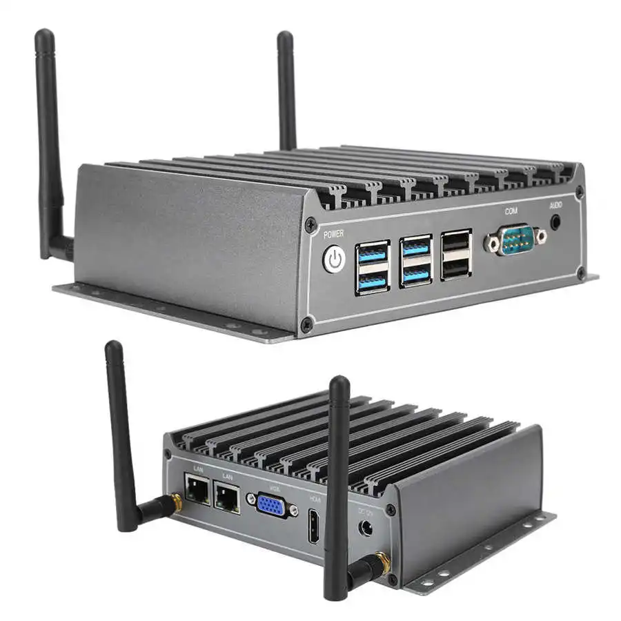 4. The mini computer with two RJ45 interface, four USB 3.0 ports, two USB 2.0 ports, one HDMI port, VGA port and DP port.