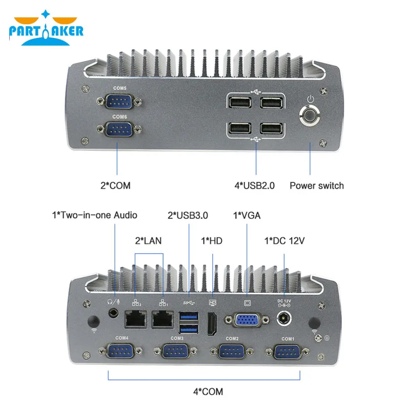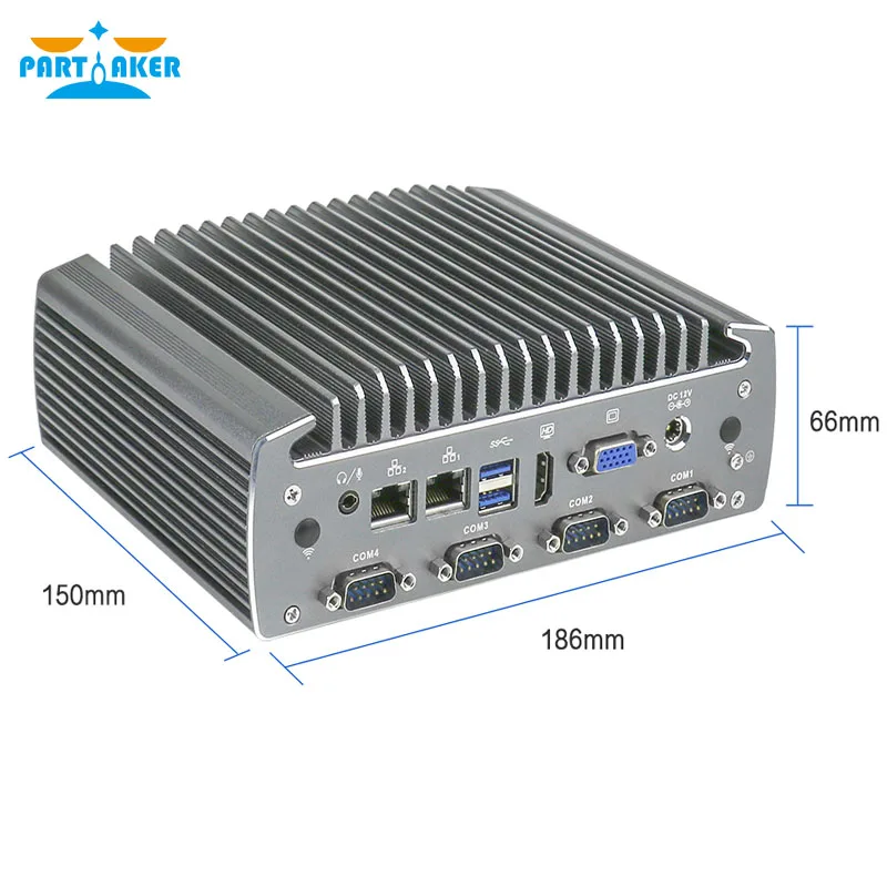 Buy Now On AliexpressPartaker Fanless Industrial Mini PC Intel Celeron J1900 Quad Core Dual Lan Linux Micro Computer Support RS232 RS485 COM HD-MI