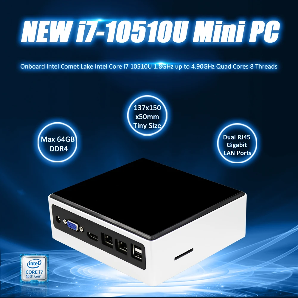 EGLOBAL Latest I7 10510U 10th GEN GAMING MINI PC Core I7 64GB DDR4 512GB M.2 NVME SSD AC WIFI Windows 10pro computer