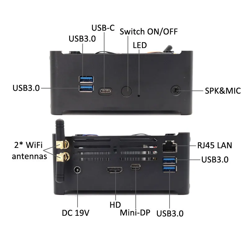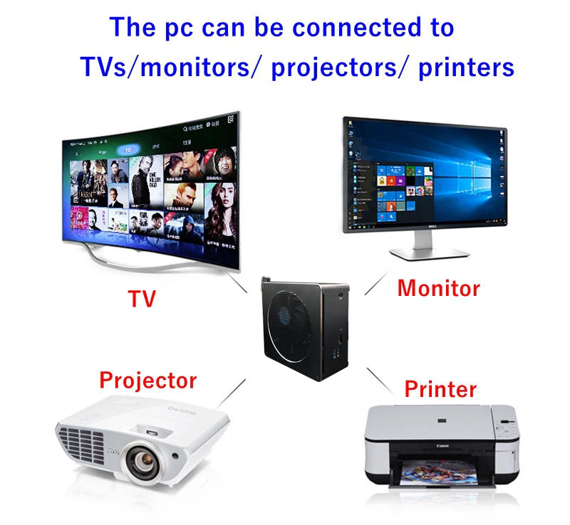 Quad-cores Mini PC Intel Celeron J3455 Windows 10 4K HTPC DDR3L M.2 SSD HDMI VGA 2.4/5.0G WiFi Bluetooth4.0 4*USB Type-C TV Box