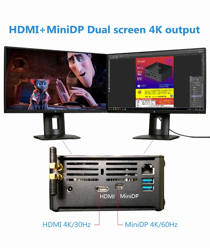 Eglobal Win10 desktop computer intel core i7 8565U HD Graphic 620 300M wifi fanless mini PC DP HDMI Dual display M.2 slotBuy Now On Aliexpress