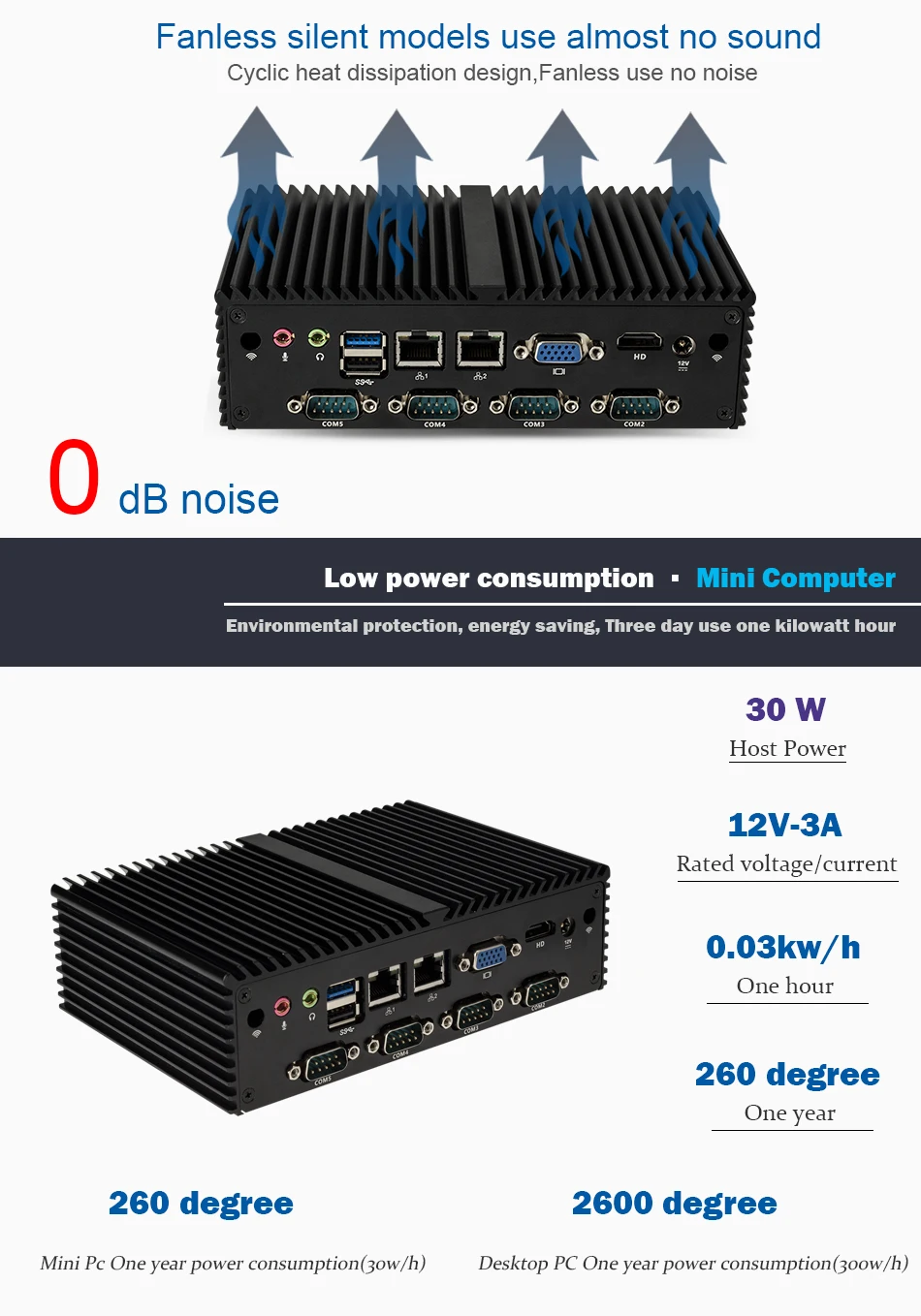 - Noiseless: Fanless system, low consumption, 0.00dB noise;