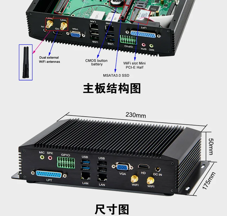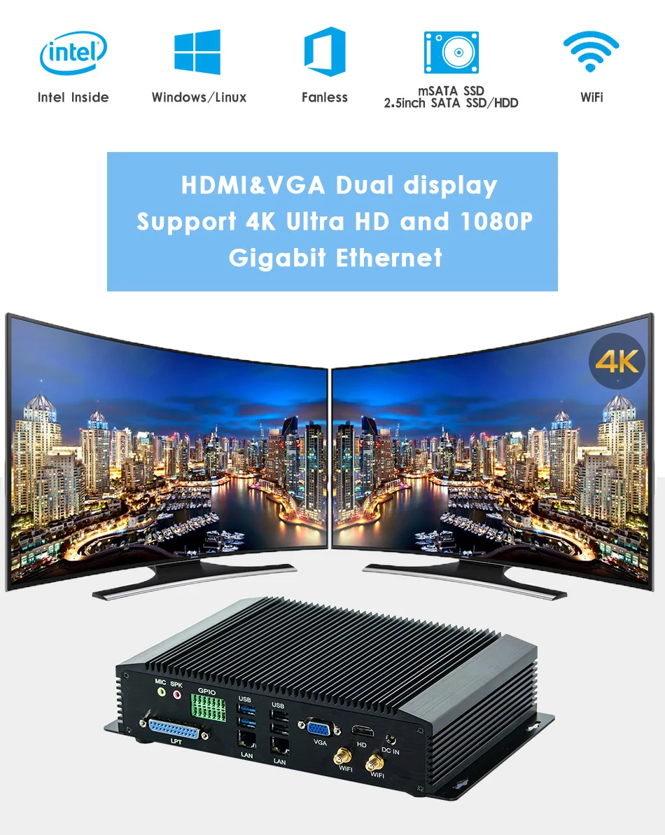 8. Support Wake-on-Lan / PXE / 256 Watchdog 9. Industrial grade mini pc.7*24hours working Industrial PC Application Area Finance retail,Advertising machine,Audio Player/Server,Electronic map machine,All-in-One PC,POS cash register,Interactive ordering machine in restaurant,Intelligent transportation,Digital signage,Education IWB(Interactive Whiteboard),Conference electronic whiteboard,Industrial PC,Subway/Metro/MRT/Tube/automatically Entrance&Export gate,Face recognition turnstile gate,Industrial camera,Data collection,Video capture,Automatic welding machine,Industrial robot,Bank ATM and other fields. 1. Usually we'll write a suitable lower declare value(like $50) of item to reduce the tariff for customers, because buyers are responsible for paying tax involved, such as import tax, VAT, etc. 2. If you have special requirement for the declare value, please leave a message to us when you place the order. 3. Due to the tax problem, buyer refuse to receive the goods, buyer need to responsible for the freight back and forth. Thank you for you cooperation. 1. We prefer payment through ESCROW which is security way for buyers. 2. Pls make sure the shipping address, zip code and tel-number are correct before payment. 3. The buyers are responsible for all additional custom fees, brokerage fees, duties and taxes for importation into your country. 4. We also can accept the payment by Paypal if you think Paypal is convenient for you to order. 5. Welcome to contact us by chat tool directly or leave a message if you order in bulk qty. 6. Refund will be done by ESCROW on aliexpress or by Paypal. 1. All items will be double inspected and well packed, they will be dispatched within 5 working days when order is paid. 2. If you address is belong to remote area by DHL, if you do not add remote area shipping fee, we will arrange shipment by our methods, hope you can kindly understand it, thanks. 3. e-EMS: it is for Russia and some other countries. 4.If you choose the shipping way is air post mail ,normally it will takes 30-90 days without tracking information , pls noticed. It's better to choose EMS or DHL , more faster and safe . 5. If you don't get the package in normal time, please contact us kindly, we will do our best to assist you. 6. If you don't accept above terms, pls do not buy it, thanks. 1. We provide one year warranty period, repair or replace for free; the second year and the third year, we can repair it free. but we will charge for the parts that need to change. 2. If you are not satisfied with the item and want to return it reasonably, please contact us kindly first. We will try our best to deal with the issue for you or you can exchange or return the item in one week. 3. All returned items must be in its original conditions. Anthropogenic causes as defects are not guaranteed. 4. If you want to return the item, pls confirm the return address with us, we only accept EMS or Post for return product. Thanks. 5. If the product break down, please contact us. 1. We maintain high standards of excellence and strive for 100% customer satisfaction! 2. If you are satisfied with them, please lease 5 star positive feedback 3. Negative feedback or low DSR does no resolve any underlying issues. If you have a problem, please contact us via email firstly and give us the opportunity to reasonably rectify in a reasonable amount of time. We will try to respond ASAP, and we are always willing to work things out. 4. For some uncontrollable factors, the item may be damaged during shipping. If you receive a broken item, please contact us in first time, we will investigate and replace, if you have any other questions please email us. we will respond within24 hours or less.