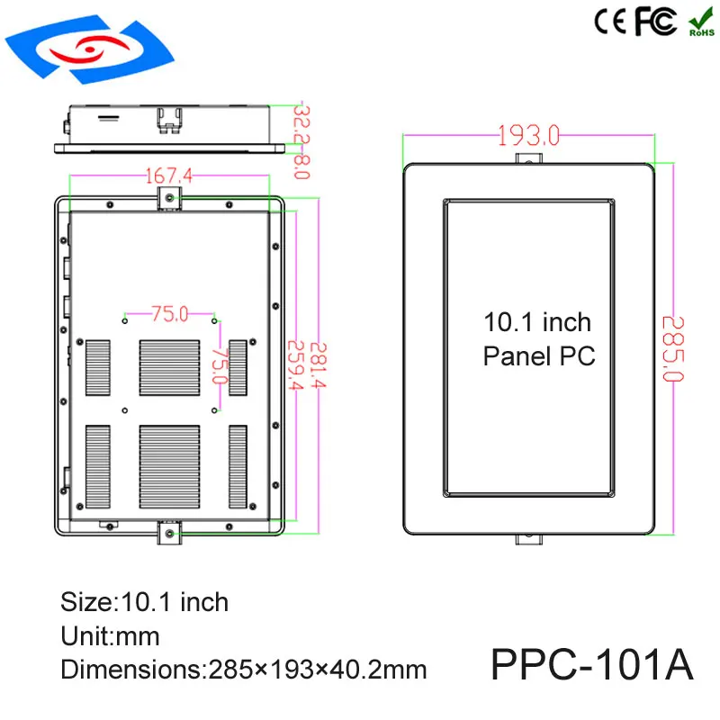 Industrial Panel PC 10.1 Inch Touch screen1. The Fanless industrial panel pc was made of brushed aluminum in beautiful shape,2. no cable is good at shockproof, and high performance at low power consumption,3. can be used in hard environments. It supports wireless 3G,WIFI.4. support windows10, win 7, xp , linux5. others size: 8.4inch, 10.4 inch, 12.1 inch, 15 inch, 17 inch.6. factory directly sale, if you have bulk order, we give lowest price.