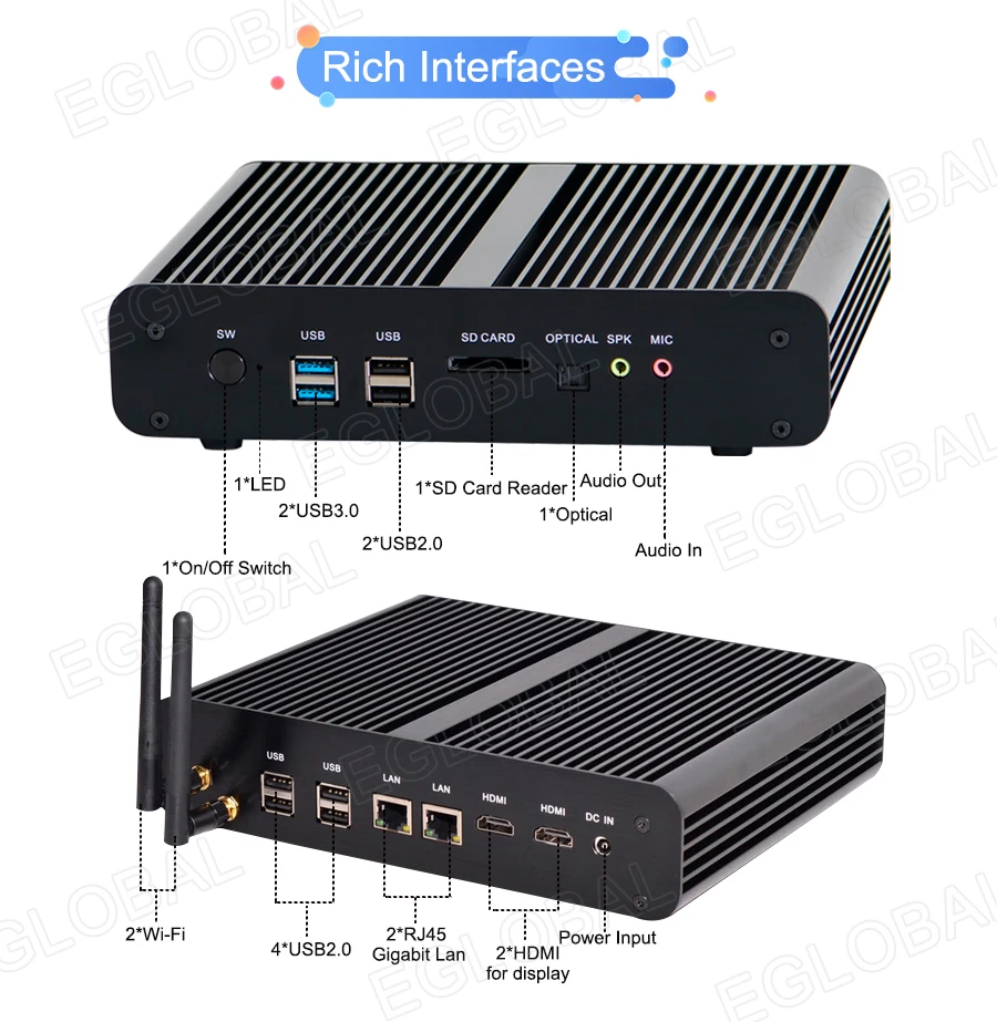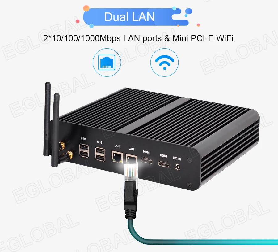 EGLOBAL Fanless Mini PC Celeron N3160 Mini Computer 2 LAN 2 COM 2 HD Low Power Pocket PC WIFI Bluetooth Win 10 Pro TV BoxBuy Now On Aliexpress