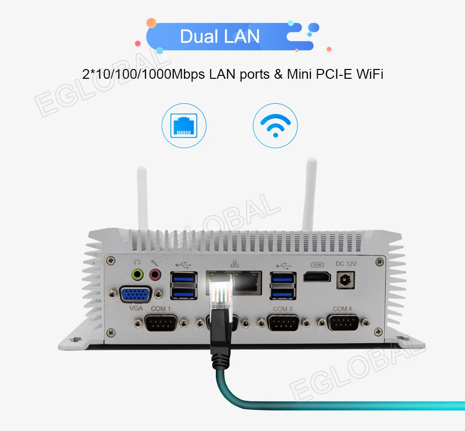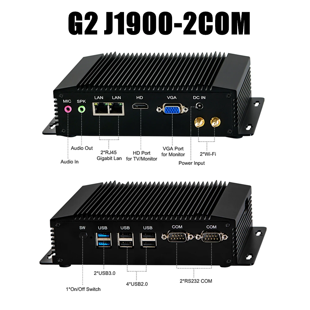 G2 model: 2*LANs, 1*HDMI, 1*VGA, 2*RS232/422/485, 2*USB3.0, 4*USB2.0
