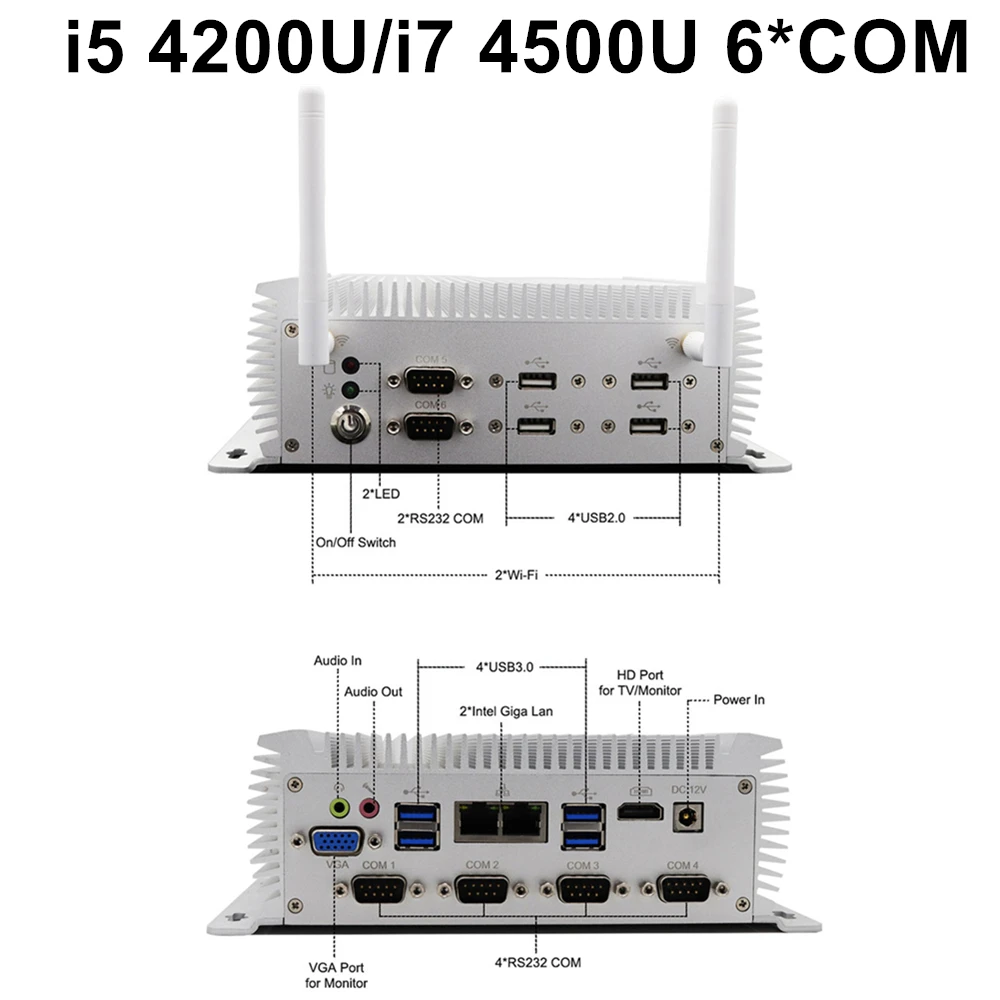 Cheapest Industrial Mini PC Intel Core i5 4200U i7 4500U Desktop Computer 6 COM GPIO LPT HDMI VGA 2 LAN 4G Module Rugged Box