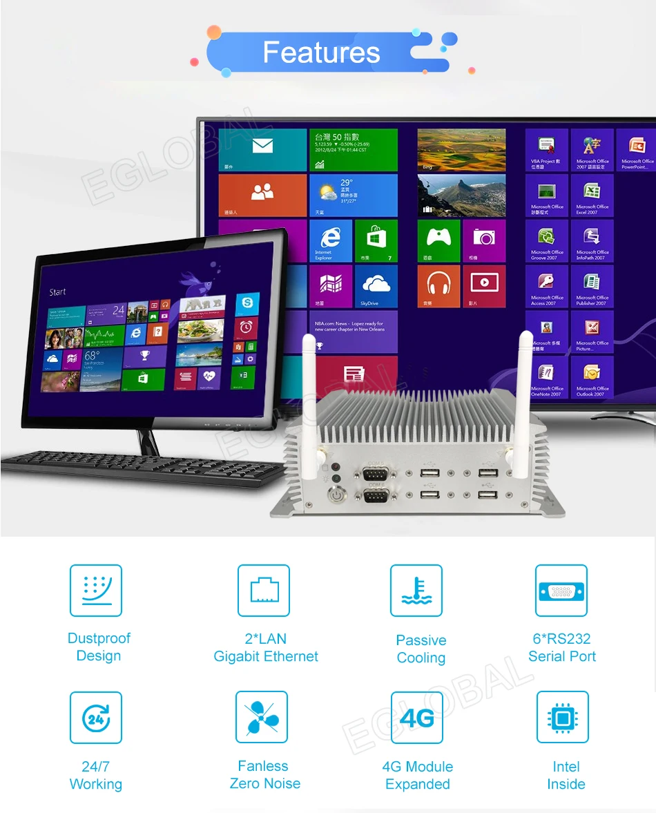 | 24 Hours Industrial Fanless Mini PC i7 i5 J1900 Win 10 Pro Linux 2*Intel Lans RS232/485 COM HDMI VGA USB WiFi Watch Dog 3G/4G |
