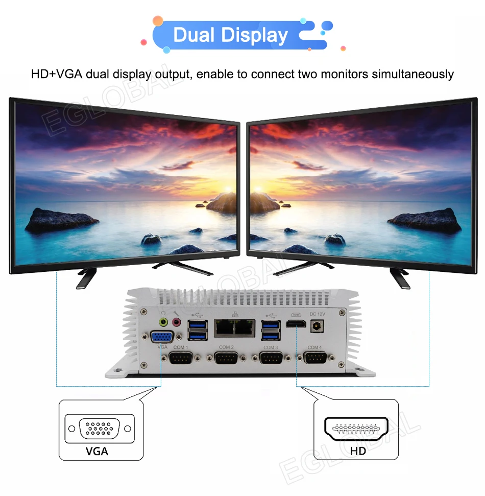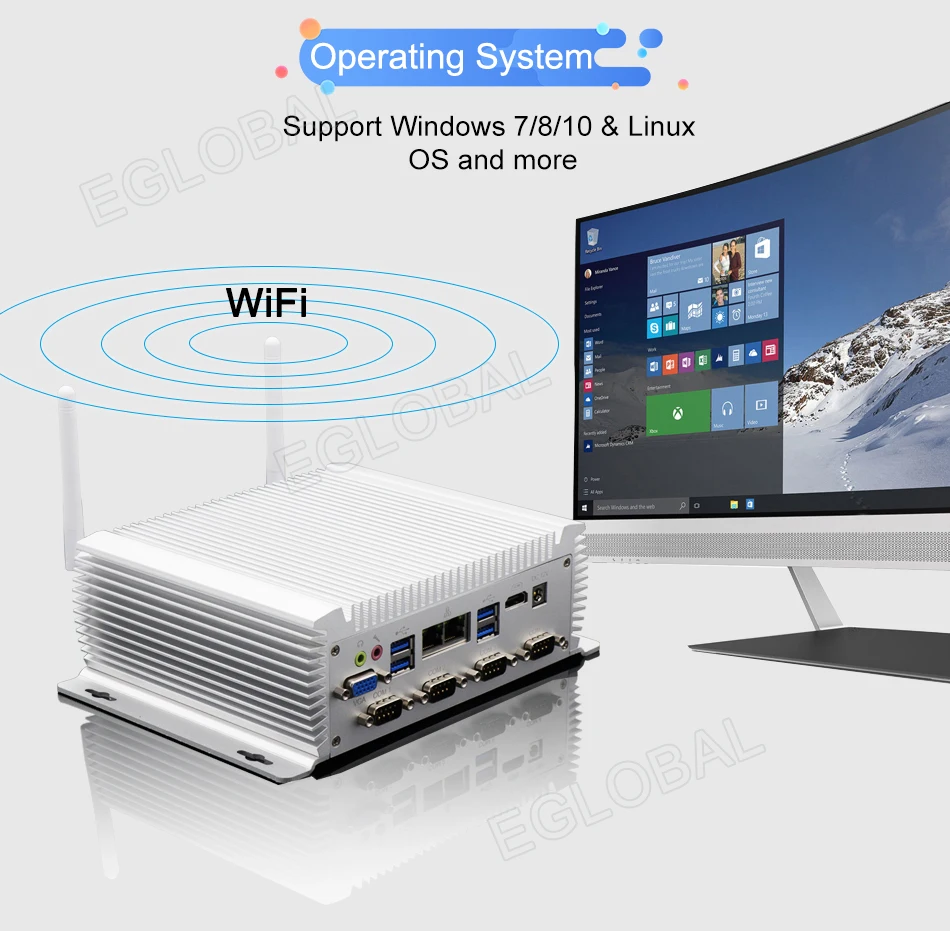 Eglobal Fanless Mini PC Intel Core i7 7500U Windows 10 Micro Computer SD Card DP HDMI 4K Display Wireless Wifi 4 USB3.0