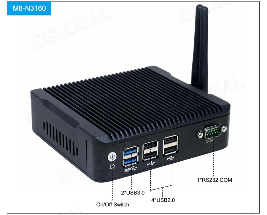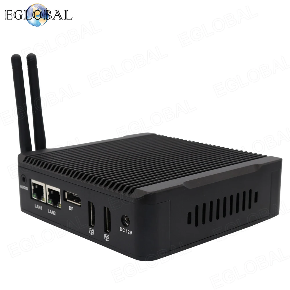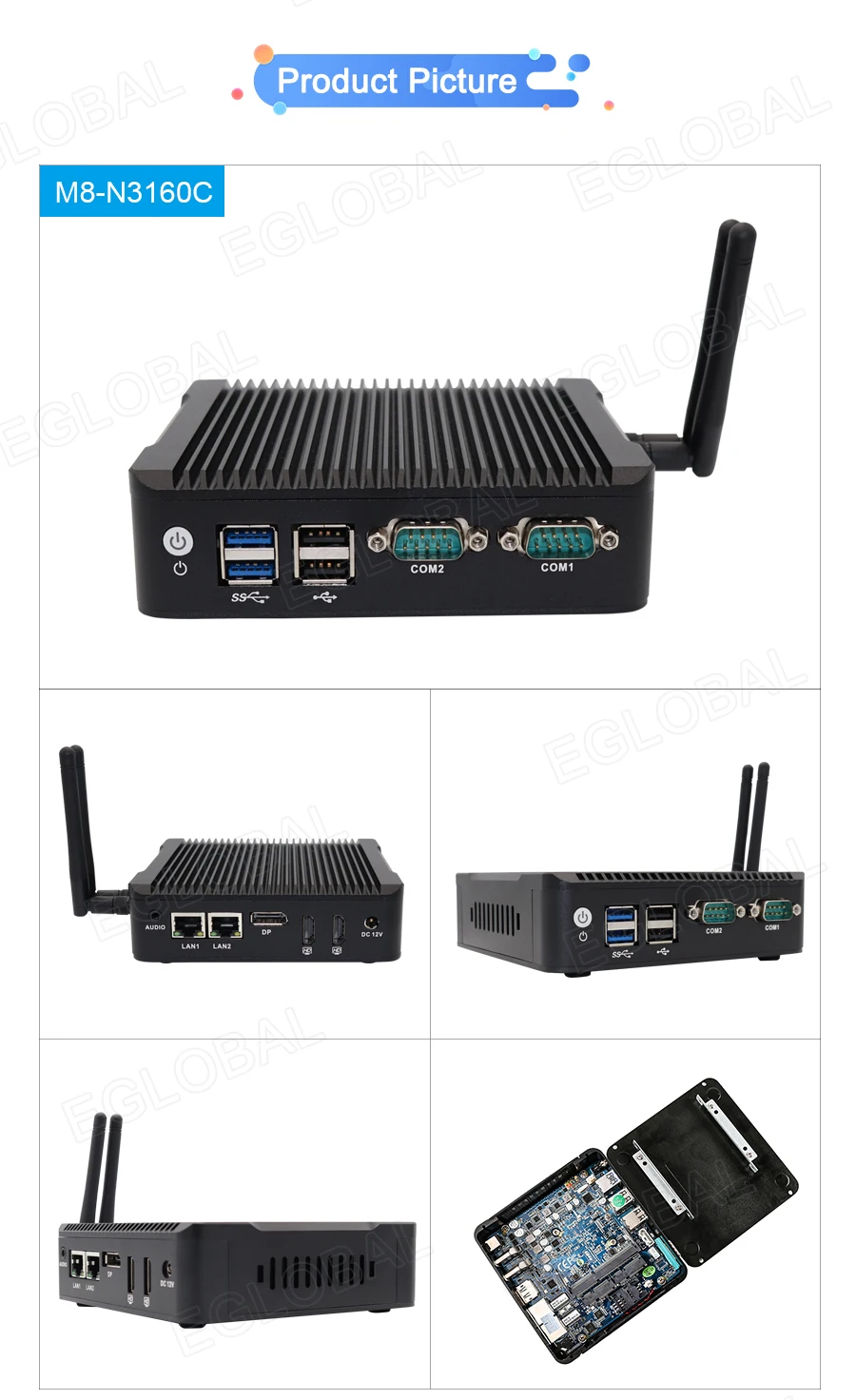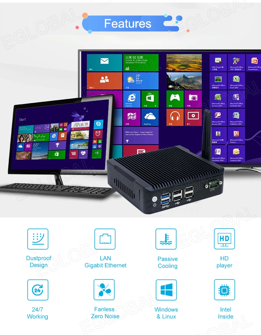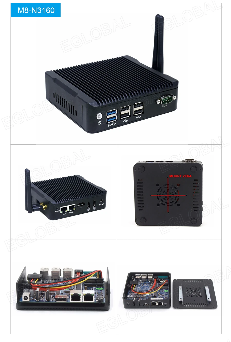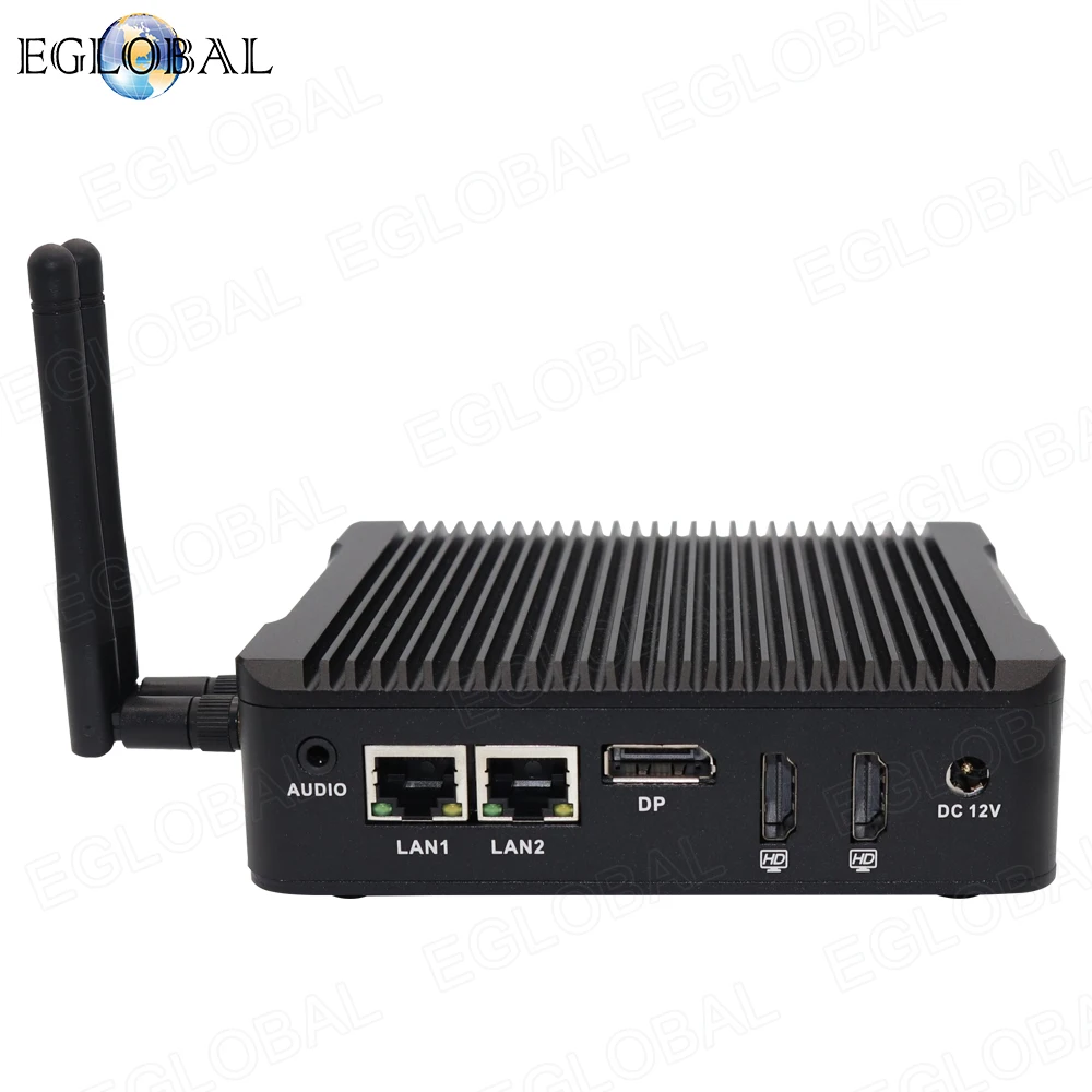 | EGLOBAL Fanless Mini PC Celeron N3160 Mini Computer 2 LAN 2 COM 2 HD Low Power Pocket PC WIFI Bluetooth Win 10 Pro TV Box |