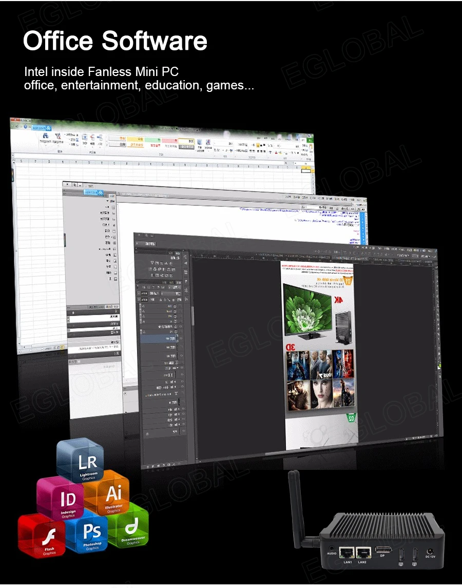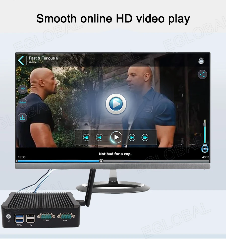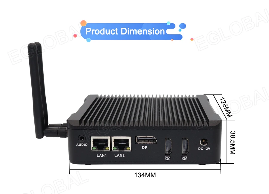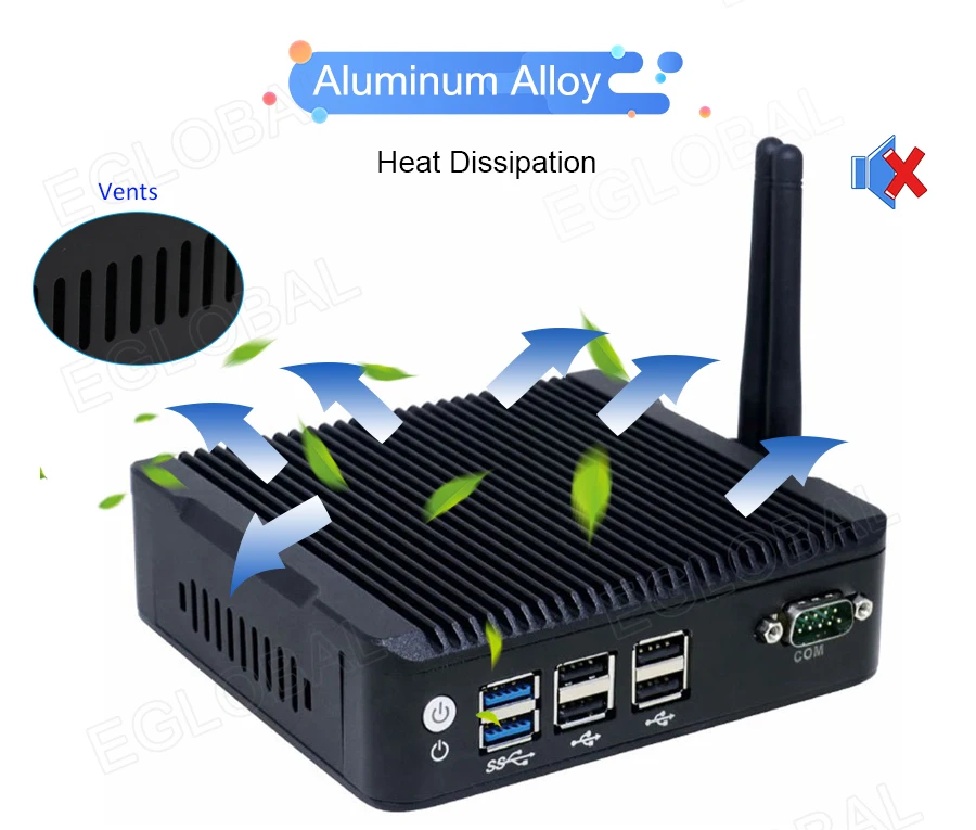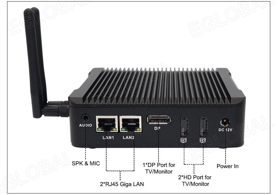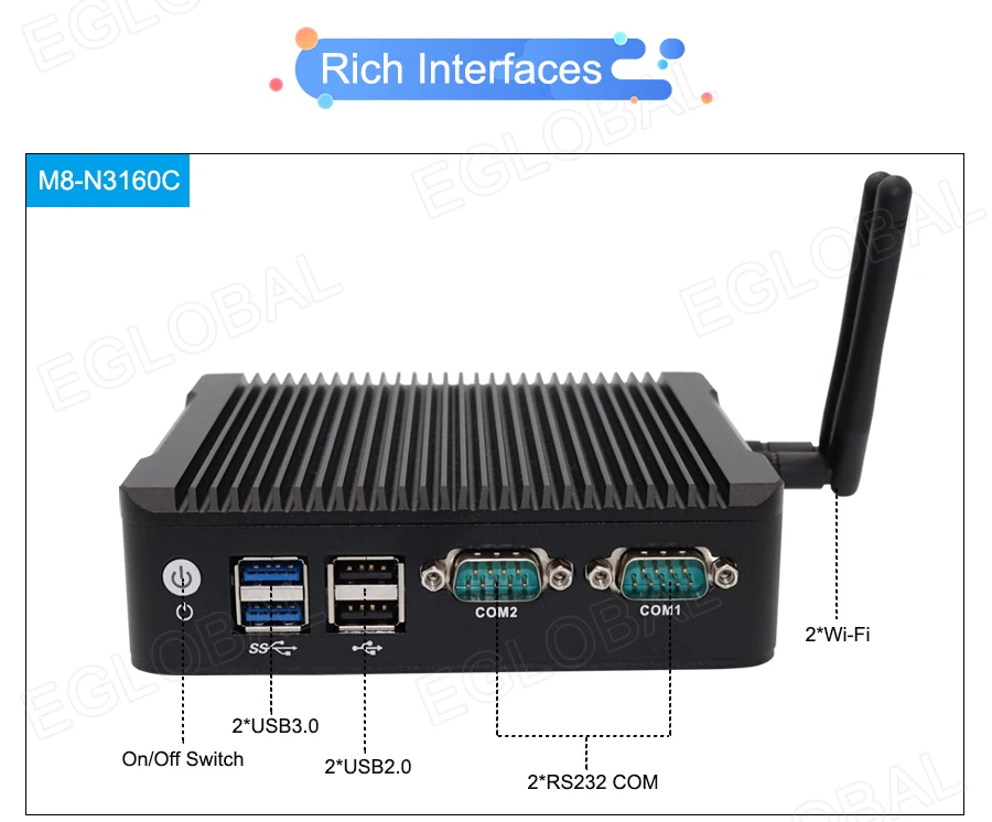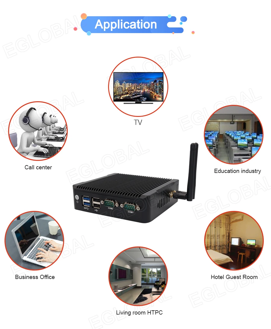 | EGLOBAL Fanless Mini PC Celeron N3160 Mini Computer 2 LAN 2 COM 2 HD Low Power Pocket PC WIFI Bluetooth Win 10 Pro TV Box |