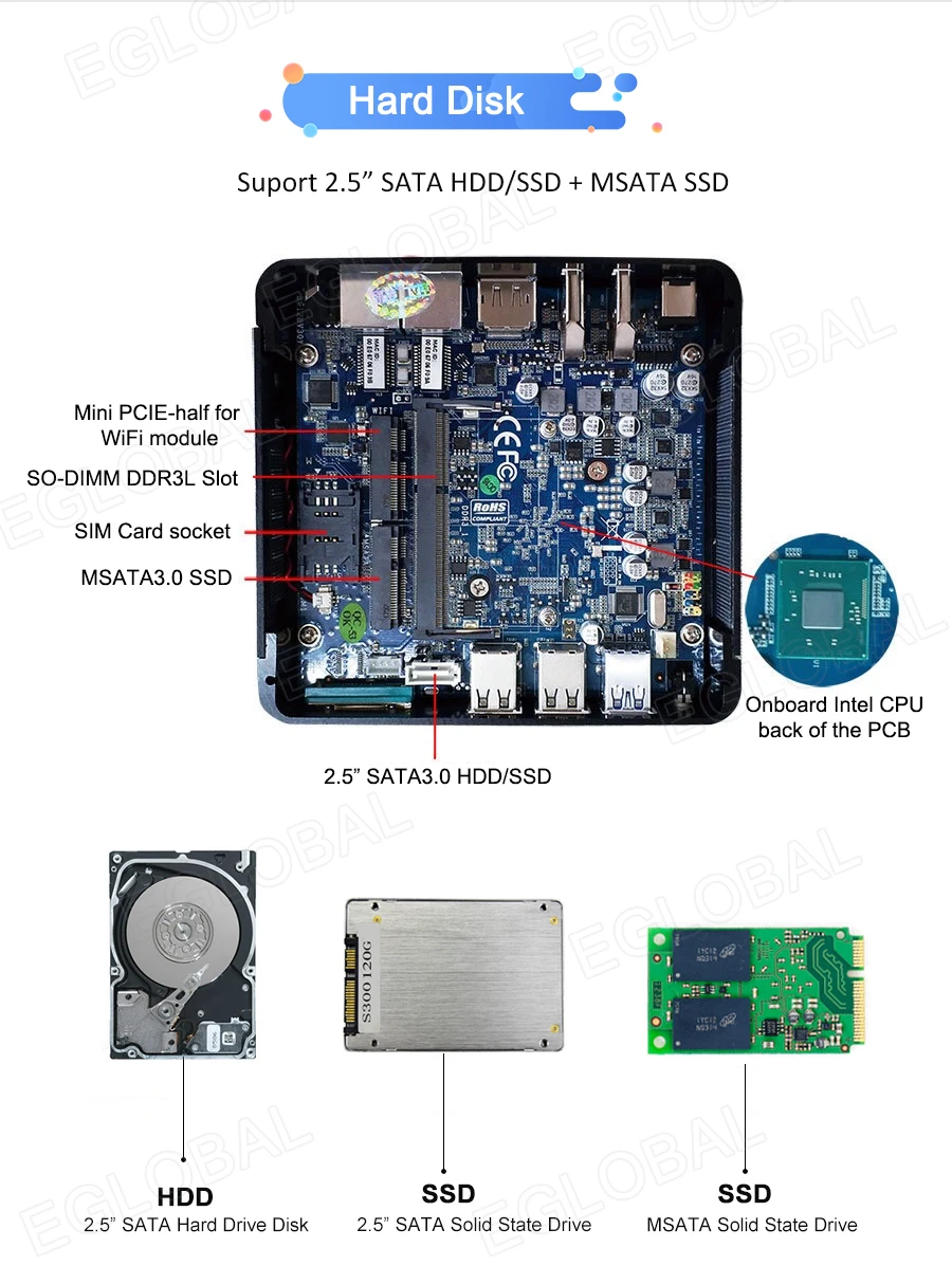 Kindly Remind: Tips:https://www.aliexpress.com/item/4000687002081.html System: Free Operating System: Default installed our trial activated OEM windows 10 pro English for free, other languages can be selected among: Russian,Spanish,Portuguese,French,German,Arabic,Italian,Japanese,Turkish,Greek etc. Please inform us which language you want to install. Other systems we can install free are like Linux, Ubuntu etc if you need. Seller is irresponsible and makes no compensation for trial OEM system.Accessories as Ram, SSD, HDD, we use famous brand:samsung, micron, SanDisk, toshiba, hynix, crucial, liteon, kingston, phison etc, What brand we use depends on our test and our stock.What brand we use depends on our test and our stock. Generally we use Msata SSD installed on Mpcie port and leave the SATA port blank for you to install 2.5'' SSD/HDD.