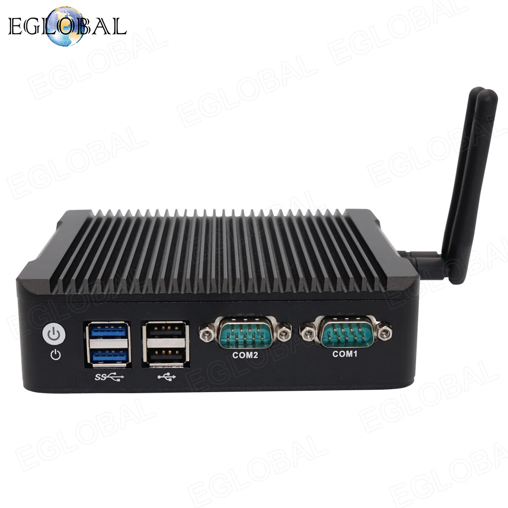 EGLOBAL Fanless Mini PC Celeron N3160 Mini Computer 2 LAN 2 COM 2 HD Low Power Pocket PC WIFI Bluetooth Win 10 Pro TV Box