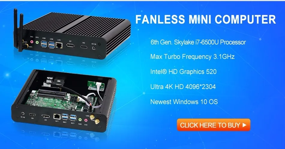 Eglobal Fanless Mini PC Intel Core i7 7500U Windows 10 Micro Computer SD Card DP HDMI 4K Display Wireless Wifi 4 USB3.0Buy Now On Aliexpress