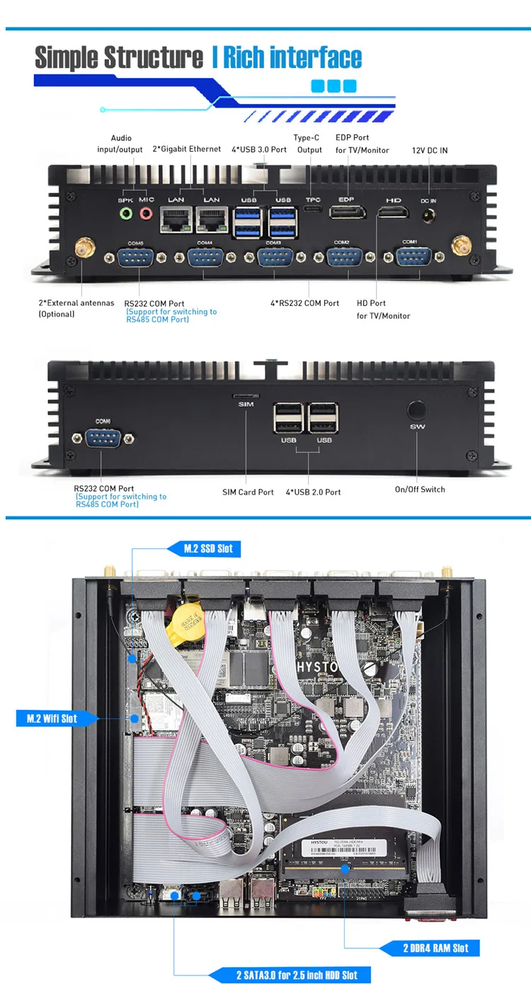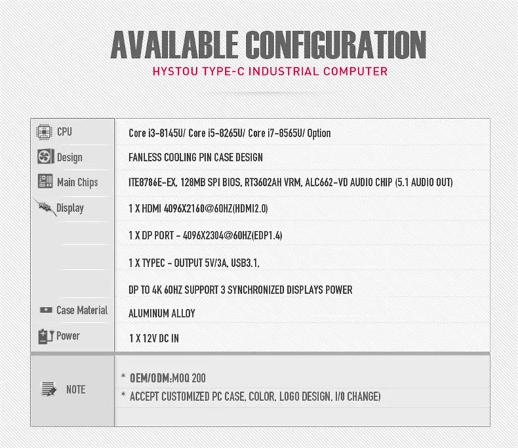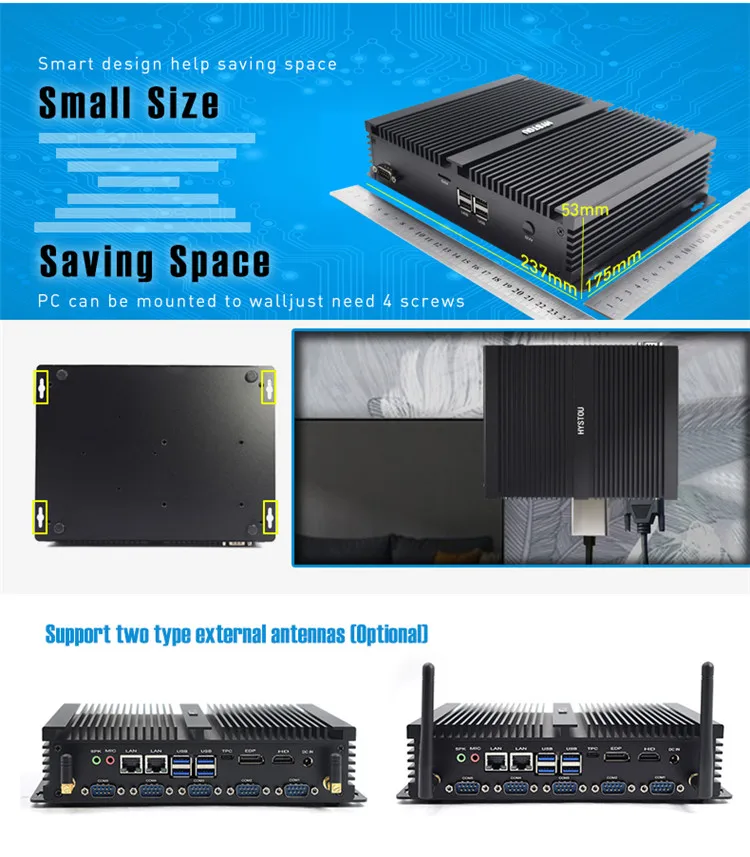 | HYSTOU New Mini Fanless Industrial PC With Whiskey Lake Core i3 8145u i5 8265u Mini Industrial Itx Computer |