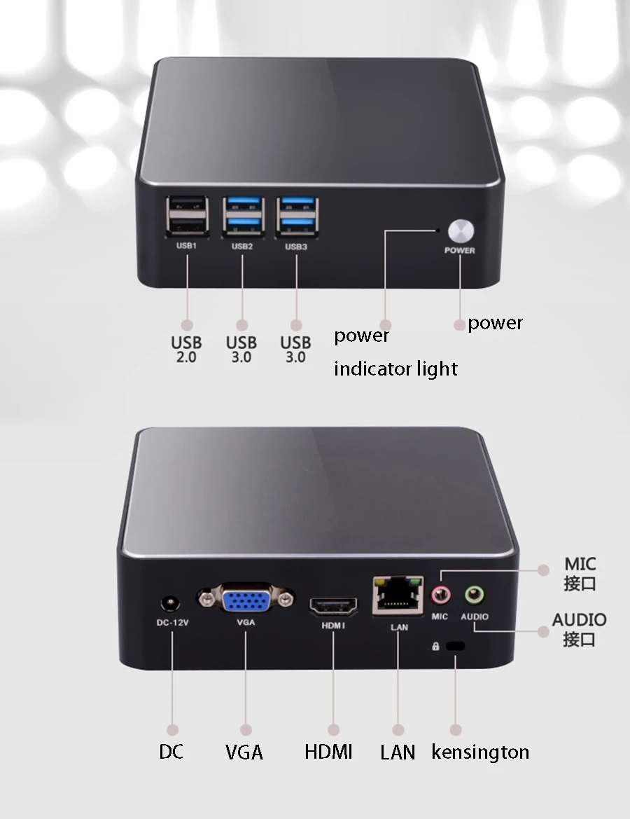 Built-in Cooling fanSupport DIYIntel Core i5-5200U Dual Core (3M Cache, up to 2.70 GHz)Intel HD Graphics 55001 x DDR3L Slot, support max to 8GB1 x mSATA SSD Slot1 x SATA Slot4 x USB 3.0 + 2 x USB 2.0Dual Band Wifi1 x RJ45 1000Mbps LANHD-MI + VGASupport 4K 60Hz HTPC