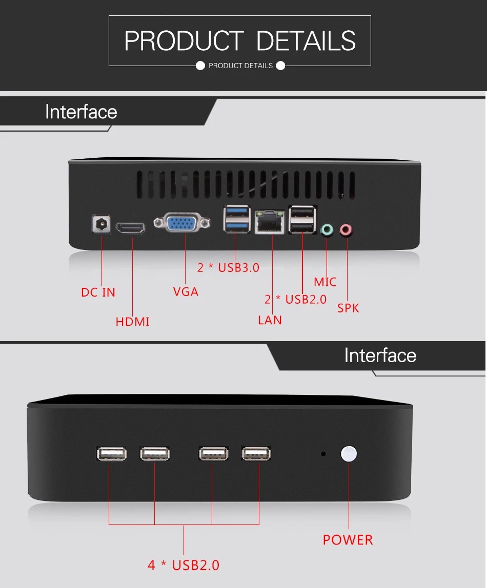 4GB RAM+64GB SSD+1T HDD Intel core i5-4200U Fanless Mini PC Micro PC 4*USB 3.0 Ports HDMI, 4K HD HTPC TV Box Windows 10 Pro