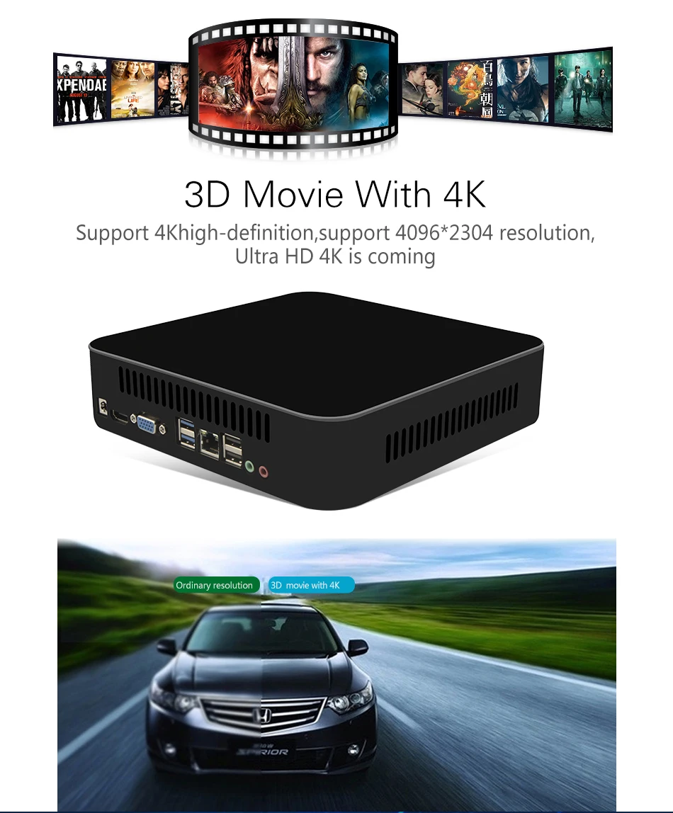 Kingdel Newest 6th Gen Skylake Fanless Mini PC,Micro Computer,HTPC,Core i3-6100U,Intel HD Graphics 520,VGA+HDMI Windows10,WiFi