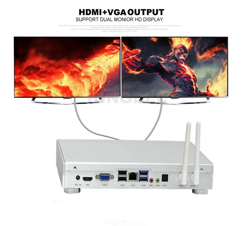 Mini PC, Desktop Mini Computer Core i3 5005U Intel 5th Generation Broadwell CPU, Dual Core, 2.0GHz , 3MB Cache, 1*HDMI, 1*VGA, 2*USB 3.0, 1*SD Card Reader, Intel HD Graphics 5000, Low power consumption,300M WiFi, Mute Fan, Full Metal Case. Key Features: Product Specifications: - used as HTPC(Home Theater Personal Computer). Connect HDTV with the HDMI cable, you can enjoy education online and play internet movies or games. -used as Personal Computer, high configuration and fast speed, zero noise. - Internet Bar. High speed Gigabit Ethernet and diskless certificate, support 3D games. - Factory, classroom, bank, supermarket, manager rooms, stores. - used in Library, reading room, hotel, training, call center, CCTV company. VESA Mount costs extra USD5, Please click the picture to pay together if you need: