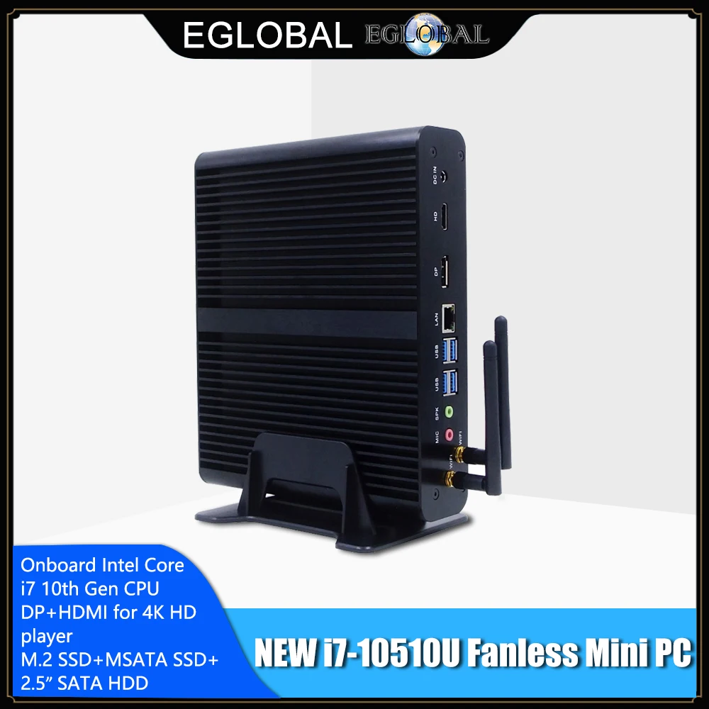 EGLOBAL Intel Core I7 10510U Fanless Mini PC Comet Lake 64GB DDR4 NVME SSD Windows 10 pro Gaming Computer Desktop 4K HDMI DP