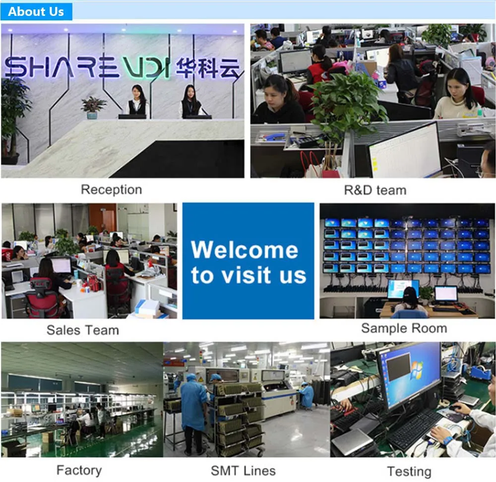 Sharevdi Technology Co., Ltd is a professional zero client, MINI PC and all-in-one solutions provider which is committed to R&D, manufacture and marketing of this field. R&D team is located in Wuhan Hubei province. Both factory and marketing are in Shenzhen. We get involving these field since 2006 which make us gain more experience than other competitors. We aim to help customers saving cost and enhancing data security by applying different solutions. With our own R&D team and factory, which make us can offer OEM service for hardware and software to meet different customers's requirements. The Reason You Chose Us 1. As a professional manufacturer and supplier of mini pc over 10 years, we win our customers with good quality, best service and competitive price. 2. Our products are 100% original and have strict QC inspection before shipment. 3. Professional and efficient sales team to serve for you diligently. 4. We have more than 11 years industrial experience. 5. We support Trade Assurance to ensure On-time shipment and product quality. 6. We provide OEM/ODM service according to your requirements. 7. We provide 3 years maintenance warranty for our products.
