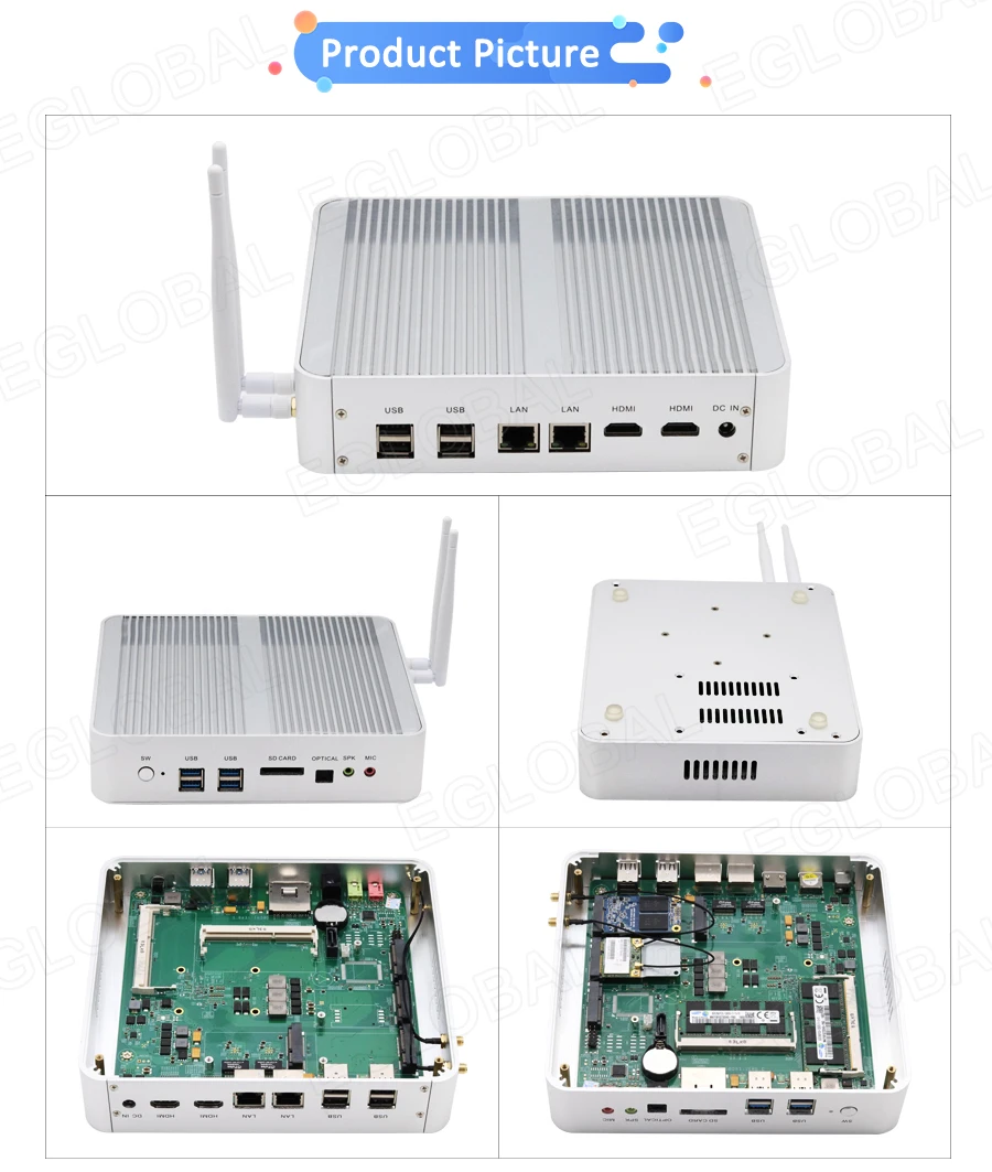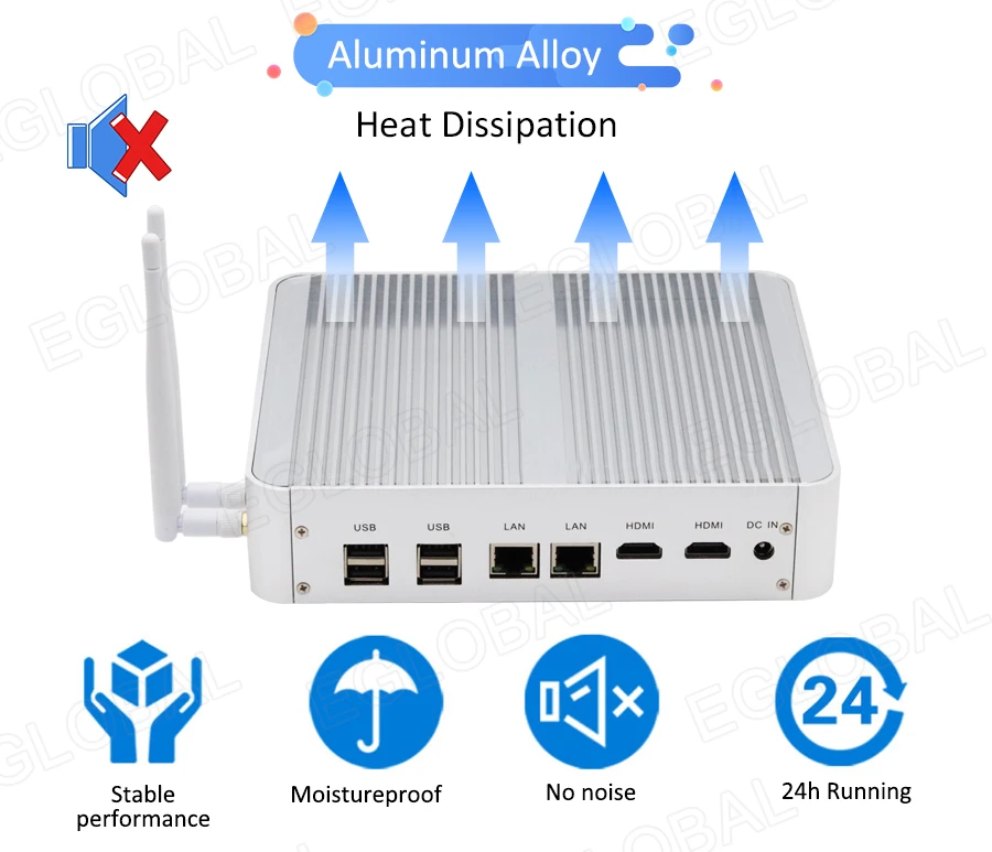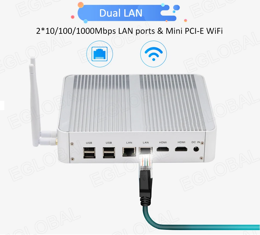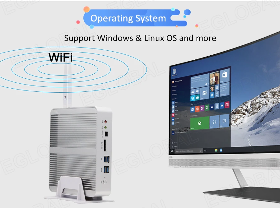 Buy Now On AliexpressEglobal Fanless Mini PC Intel Core i3 7100U i5 7200U DDR3L/DDR4 RAM Computer Linux Windows Thin PC 6*USB RJ45 Lan VGA HDMI HTPC