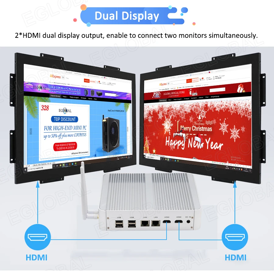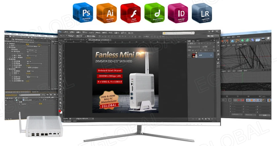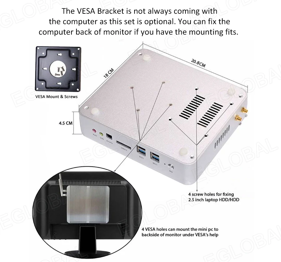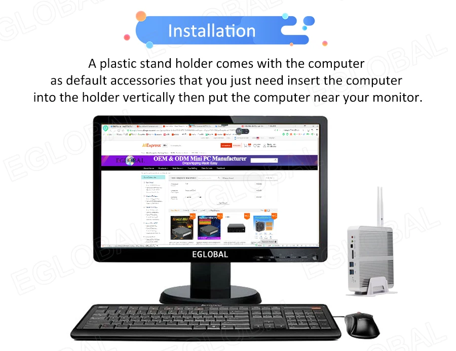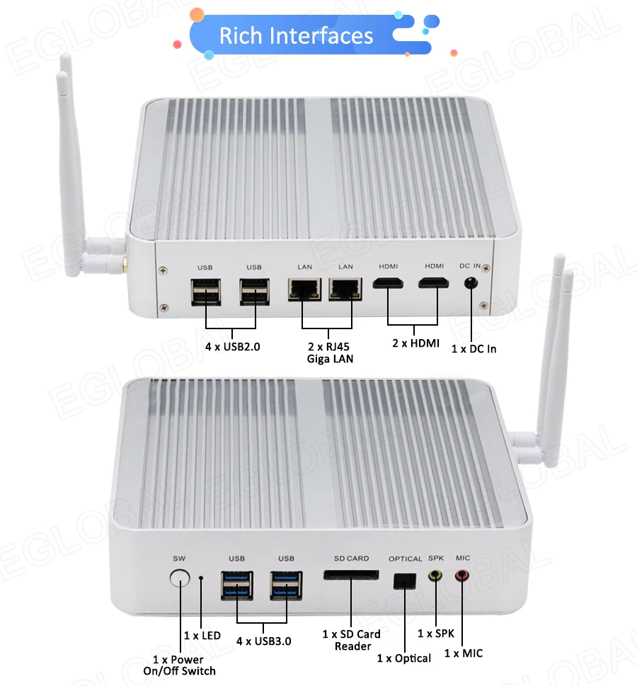 Buy Now On AliexpressEglobal Fanless Mini PC Intel Core i3 7100U i5 7200U DDR3L/DDR4 RAM Computer Linux Windows Thin PC 6*USB RJ45 Lan VGA HDMI HTPC