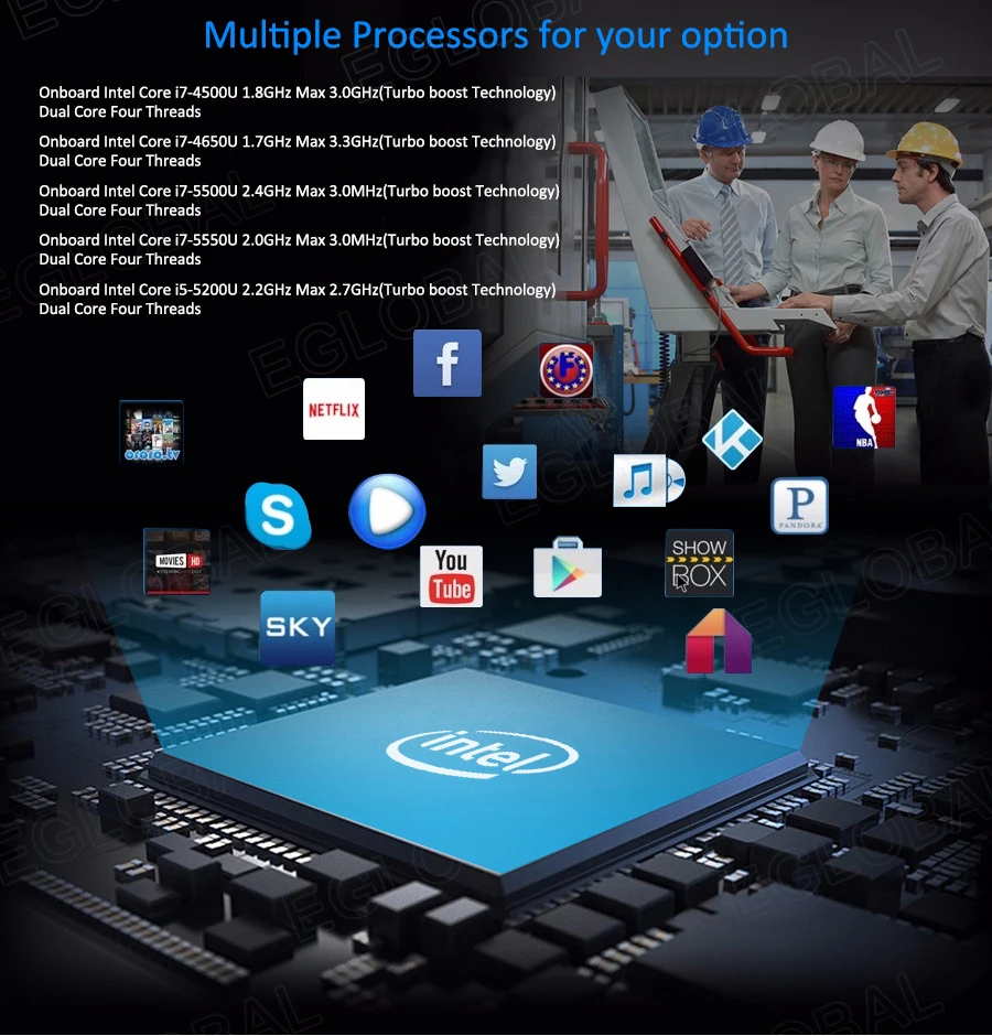 THIS EGLOBAL MINI PC DETAILS 1.14nm Intel Core i5 5200U 2 core 4 threads 3MB cache 2.2GHz Max 2.7GHz TDP 15W Graphics HD 5500.(maybe send i5 5250U etc.)