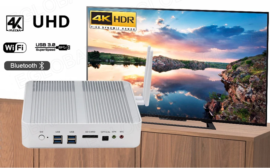 Buy Now On AliexpressKingdel Newest 6th Gen Skylake Fanless Mini PC,Micro Computer,HTPC,Core i3-6100U,Intel HD Graphics 520,VGA+HDMI Windows10,WiFi